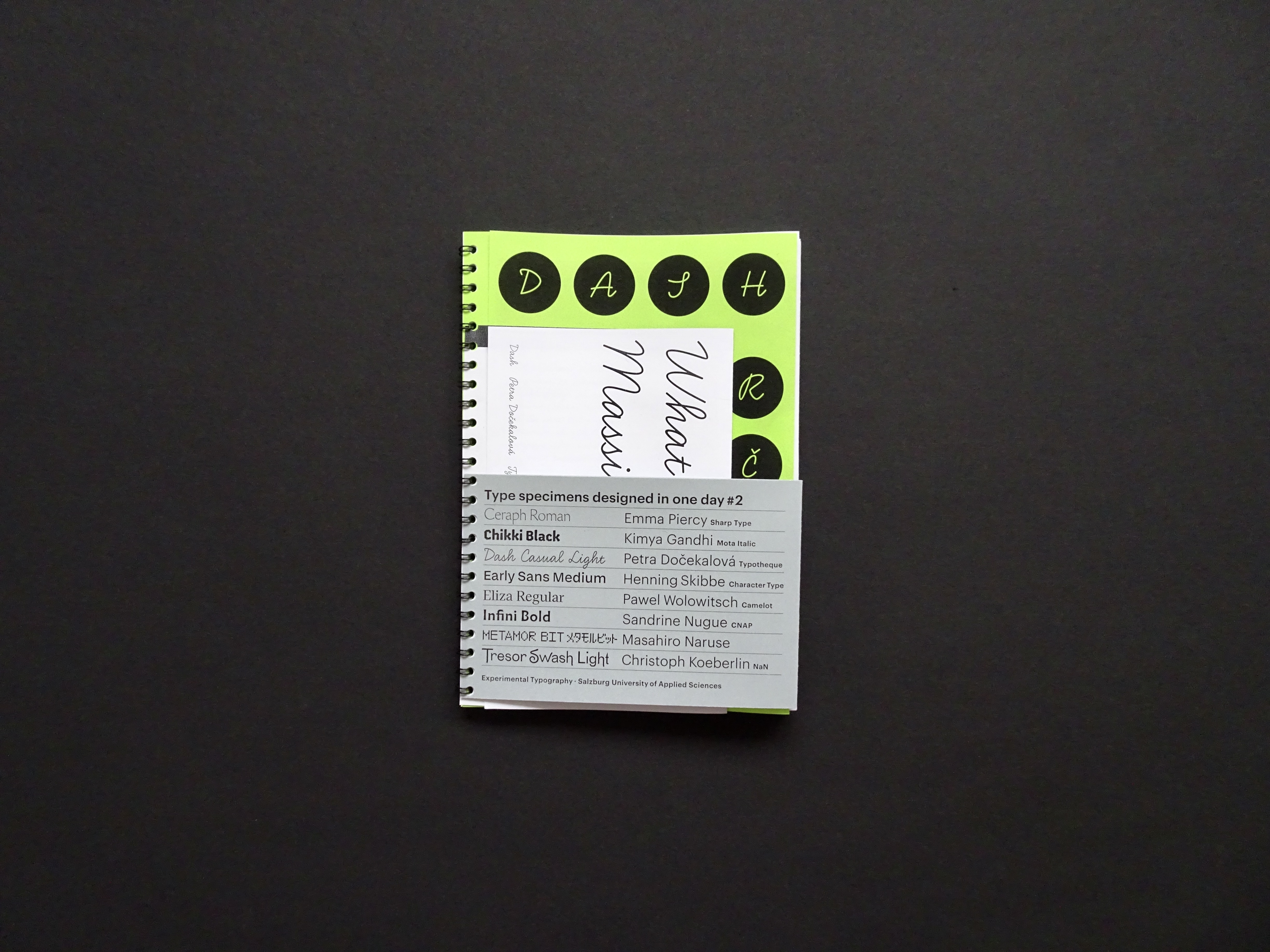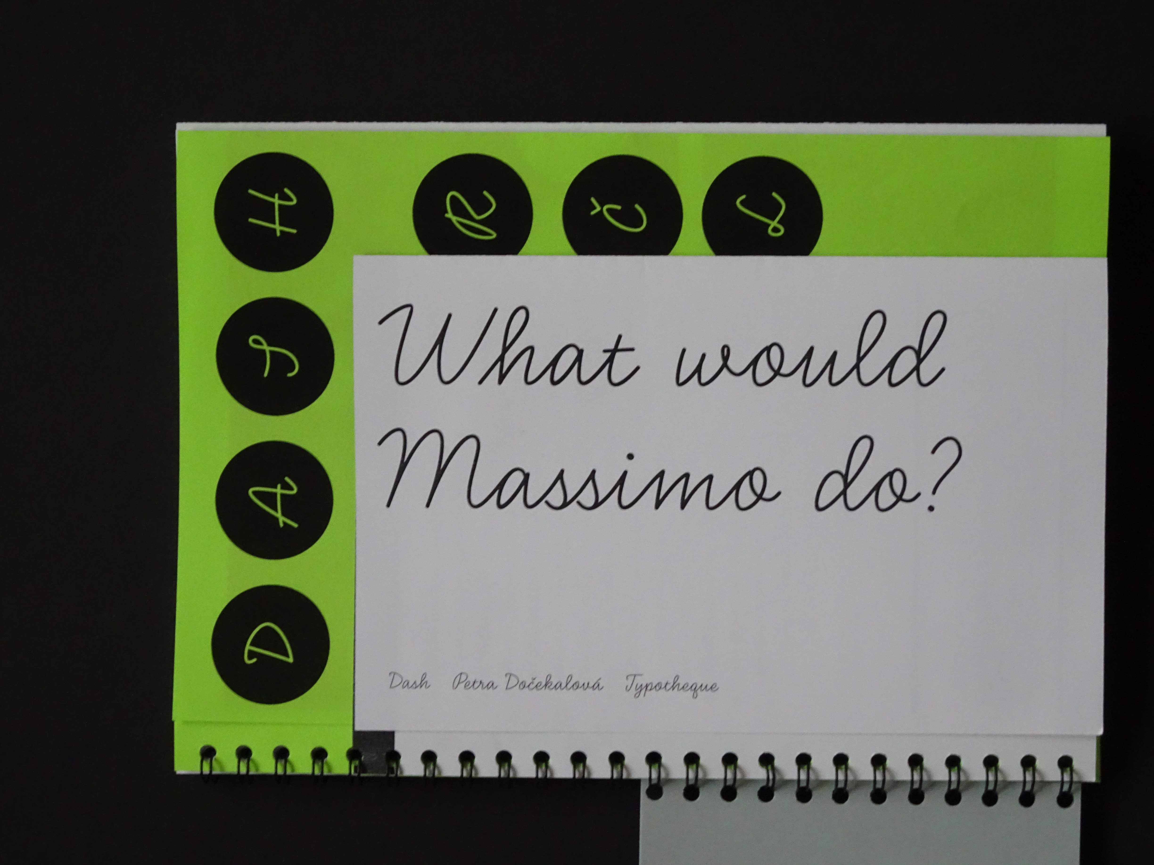 A type specimen in Dash, a typeface designed by Petra Dočekalovà. What would make this typeface uncomfortable? What was it actually not designed to do? What would Massimo (Vignelli) do with it?